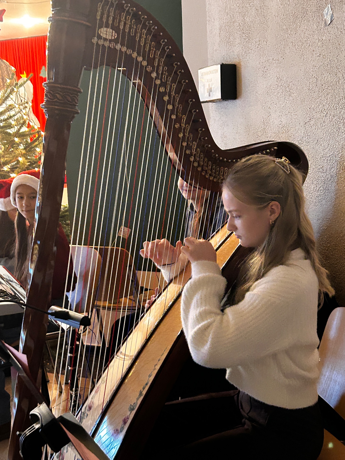 Den Auftakt bildete ein schaurig-schöner Kramperllauf, der dank der wachsamen Engel rasch in geordnete Bahnen gelenkt wurde. Was folgte, war eine bunte Vielfalt an musikalischen und poetischen Beiträgen: Von Harfe, Klarinette, Flöte und Ziach über Trompete und Klavier bis hin zu Engelsgedichten und persönlichen Wunschgedanken – jeder Programmpunkt erfüllte die Aula mit adventlicher Wärme und echter Freude.